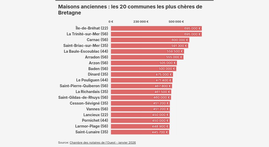 Prix m2 Bretagne 2026 : Comparatif complet des 20 plus grandes villes